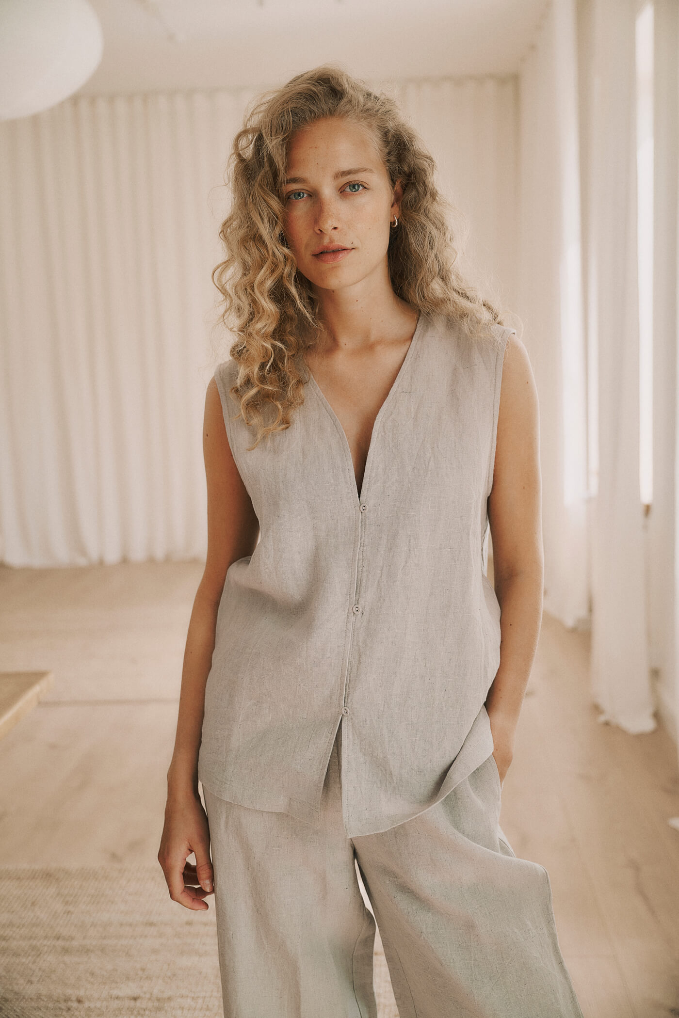 Our styles are crafted from natural materials like undyed wool, linen, and GOTS-certified organic cotton. We use mono-textiles to ensure that, should a product be damaged beyond repair, the fibers can be repurposed.