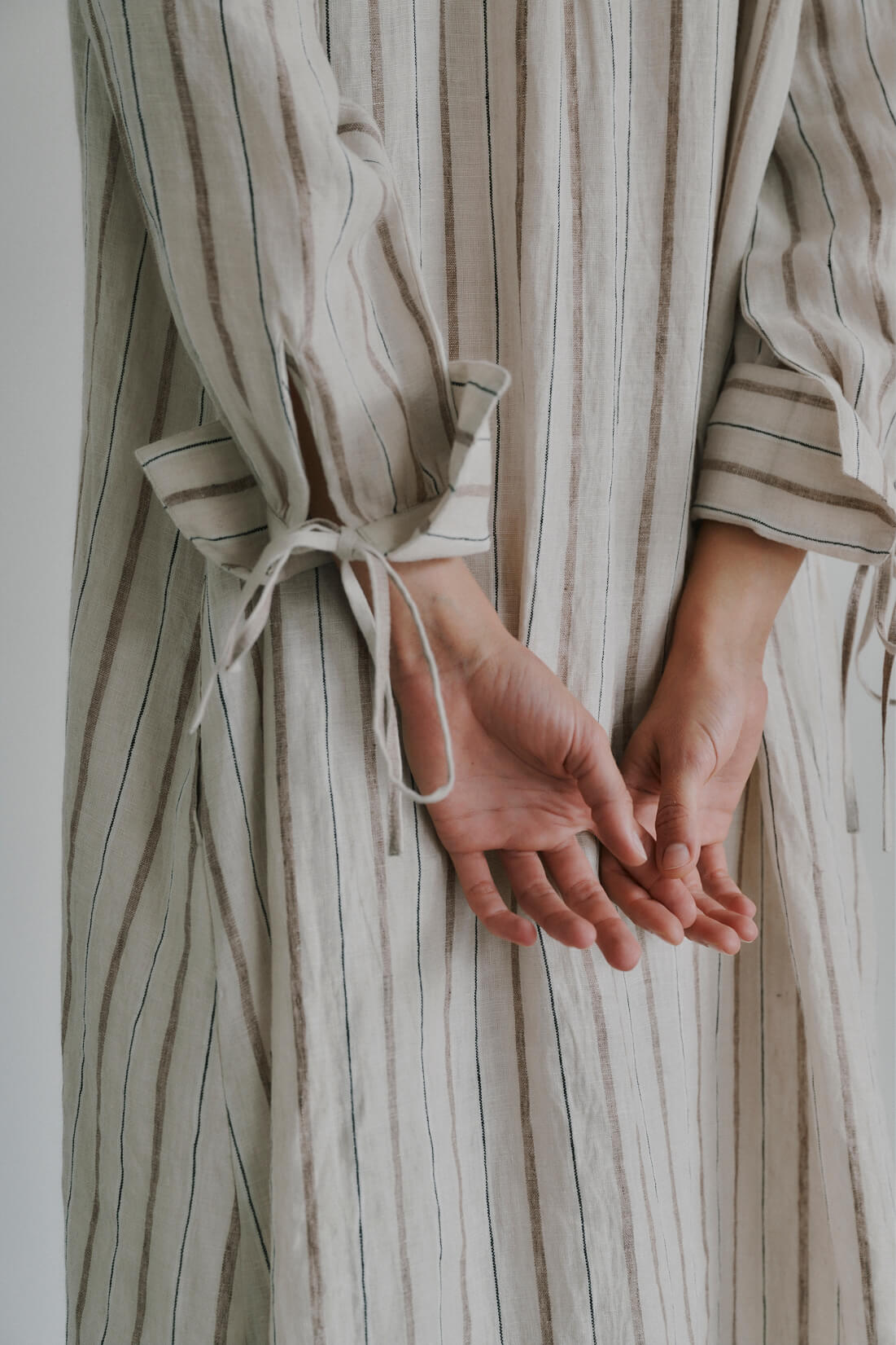 It is important to us that our clothes feel and look beautiful on the body. That’s why we design with a roomy fit in mind, and we always add elasticated waistbands and strings to adjust the fit to all body types.